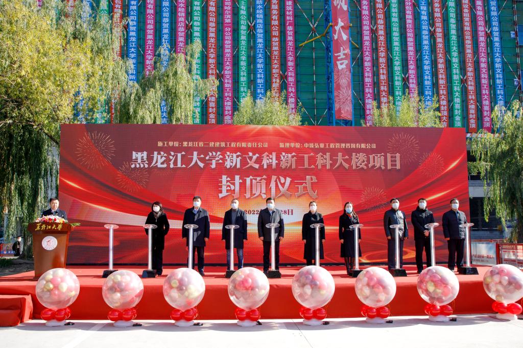 ??10月28日上午,黑龍江大學新文科新工科大樓項目封頂儀式在禹志園舉行。校黨委書記王永清,黨委副書記丁宏,副校長嚴明、張穎春、于文秀、鐘衛東、井立強、李卓,施工單位黑龍江省二建建筑工程有限責任有限公司黨委書記、董事長包麗麗,監理單位中臻弘業工程管理咨詢有限公司常務副總經理王超,學校相關職能部門負責人...