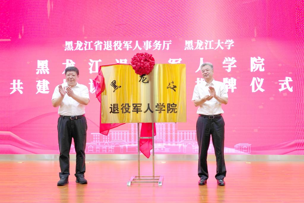 7月12日上午,黑龍江省退役軍人事務廳、黑龍江大學共建合作協議簽約暨黑龍江退役軍人學院揭牌儀式在黑龍江大學主樓一樓報告廳舉行。省退役軍人事務廳黨組書記、廳長楊國利,校黨委書記王永清,省軍區政治工作局大校副主任、省退役軍人事務廳副廳長冷海濤,省人力資源和社會保障廳黨組成員、副廳長左志斌,省教育廳二級巡...