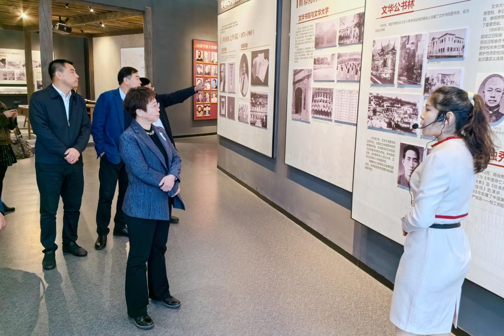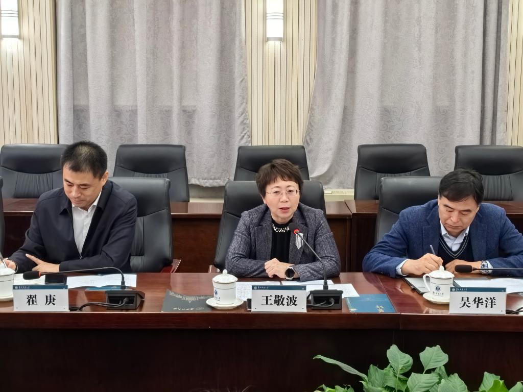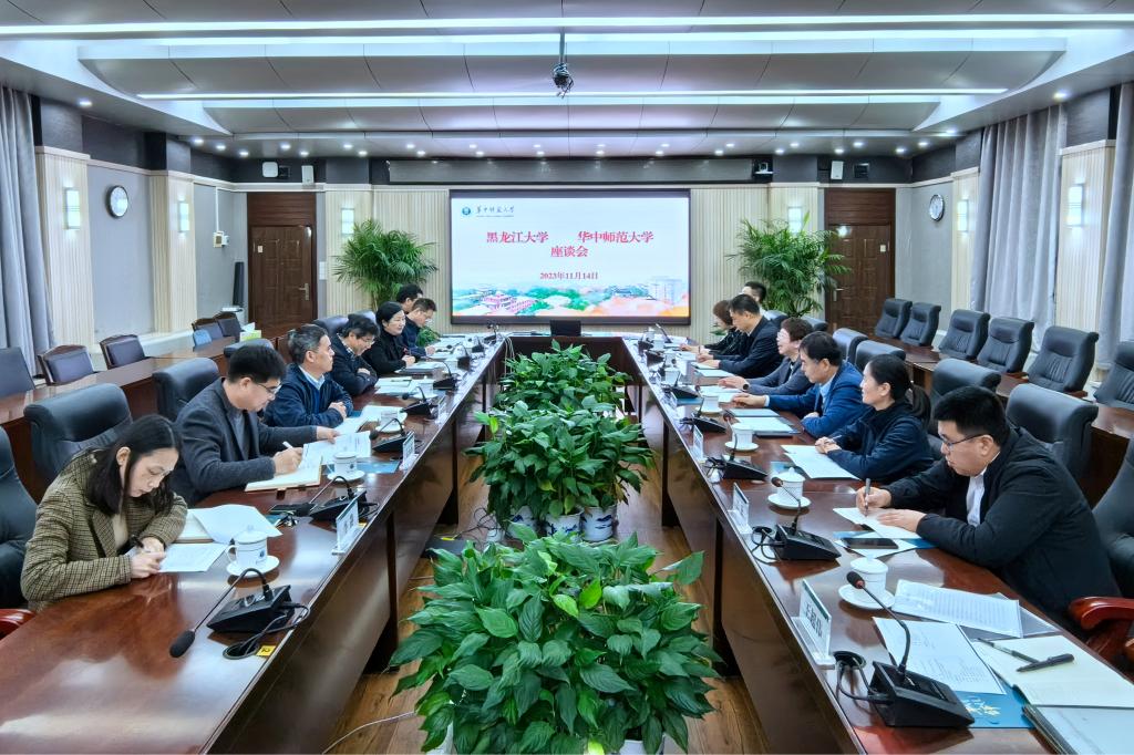 在華中師范大學(xué),彭雙階副校長代表華中師范大學(xué)向王敬波校長一行表示熱烈歡迎,期待雙方以此次調(diào)研為契機(jī),積極探索更寬領(lǐng)域更深層次的互動(dòng)合作和資源共享,共同譜寫共建共贏發(fā)展的嶄新篇章。王敬波校長一行首先參觀了教育大數(shù)據(jù)應(yīng)用技術(shù)國家工程研究中心和華中師范大學(xué)校史館。隨后,圍繞學(xué)科專業(yè)優(yōu)化調(diào)整和交叉融合、校院兩級管理、人才引育留用機(jī)制、教育數(shù)字化轉(zhuǎn)型、重點(diǎn)馬克思主義學(xué)院建設(shè)等方面工作與華中師范大學(xué)有關(guān)部門開展了廣泛研討。