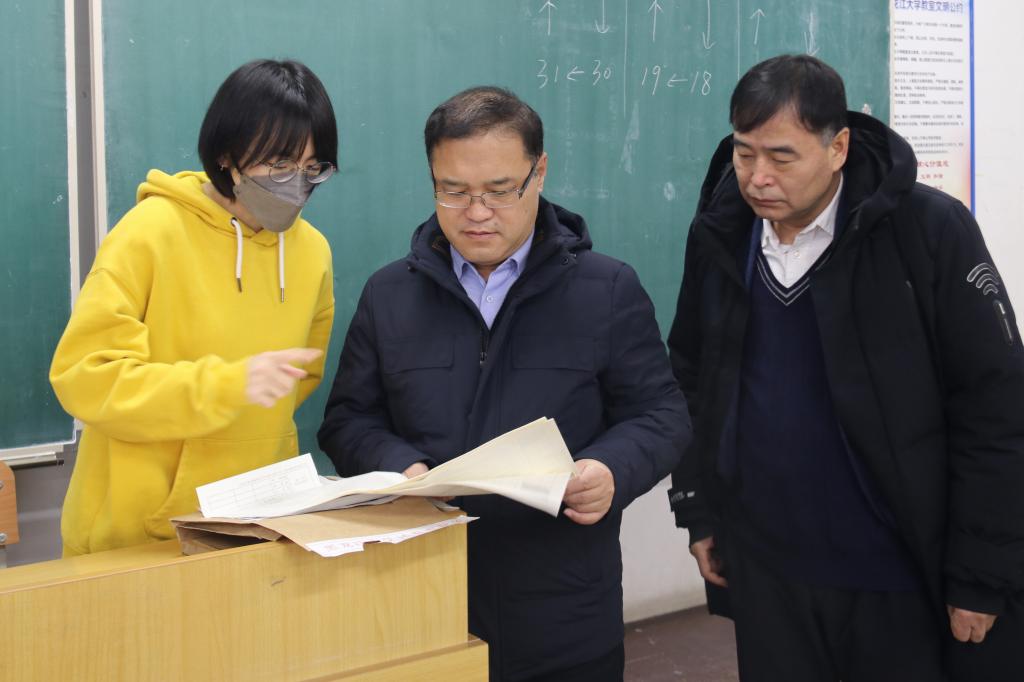 巡視期間,井立強對試卷內容、題型能夠有效地評估學生的學習成果,以及學生對考試的積極態度表示滿意。井立強指出,考試是教學工作的重要環節,要端正考風,嚴肅考紀,不斷營造我校優良學風;要結合考試數據,認真分析成績,發現教學中存在的不足,不斷持續改進教學,提高教學質量。(攝影:李欣雨)