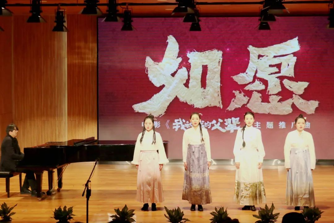 婉轉(zhuǎn)低沉的琴聲響起,女生小合唱《如愿》將觀眾帶入清澈的歌聲中,淺淺低訴著父輩的奮斗與奉獻(xiàn),傳遞著濃厚的親情和感人至深的家國情。