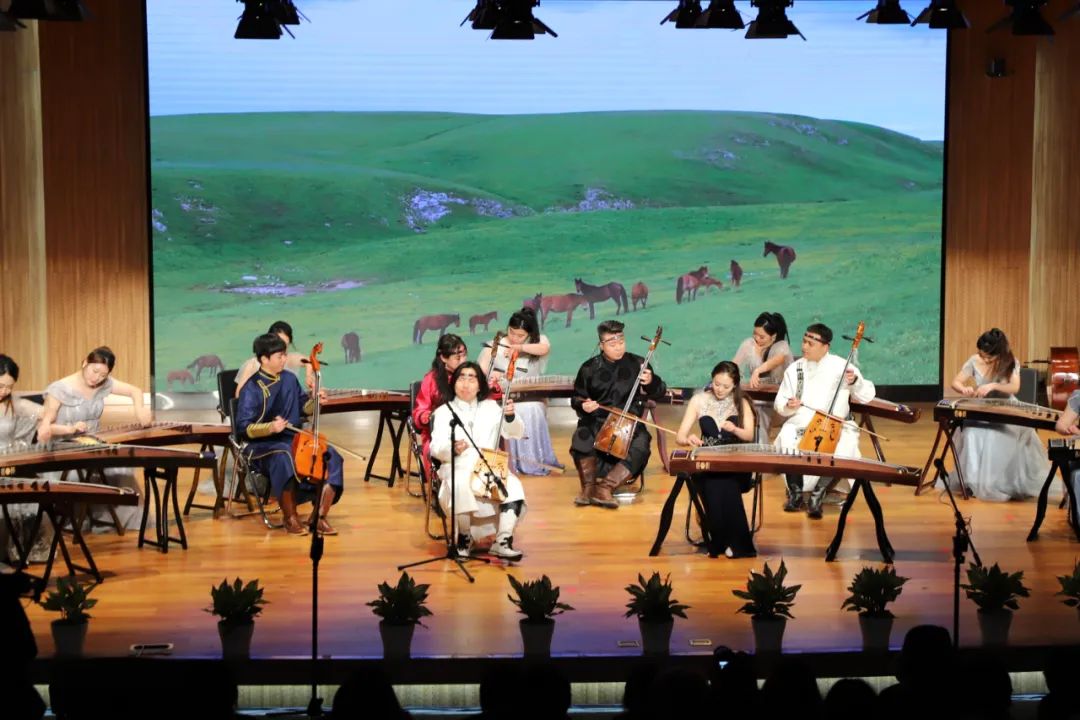 人聲漸歇,馬頭琴與古箏重奏曲《白馬》帶來草原熱烈粗獷的氣息,萬馬飛馳,熱血沸騰。