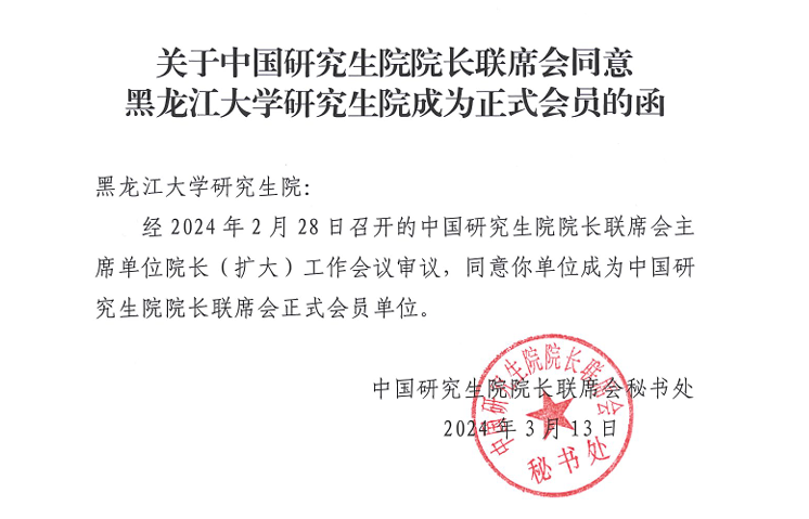 2月28日,中國研究生院院長聯(lián)席會組織召開2024年主席單位院長(擴大)工作會議,會上一致通過接納我校研究生院加入院長聯(lián)席會并成為院長聯(lián)席會會員單位的決議,成為中國研究生院院長聯(lián)席會會員單位。