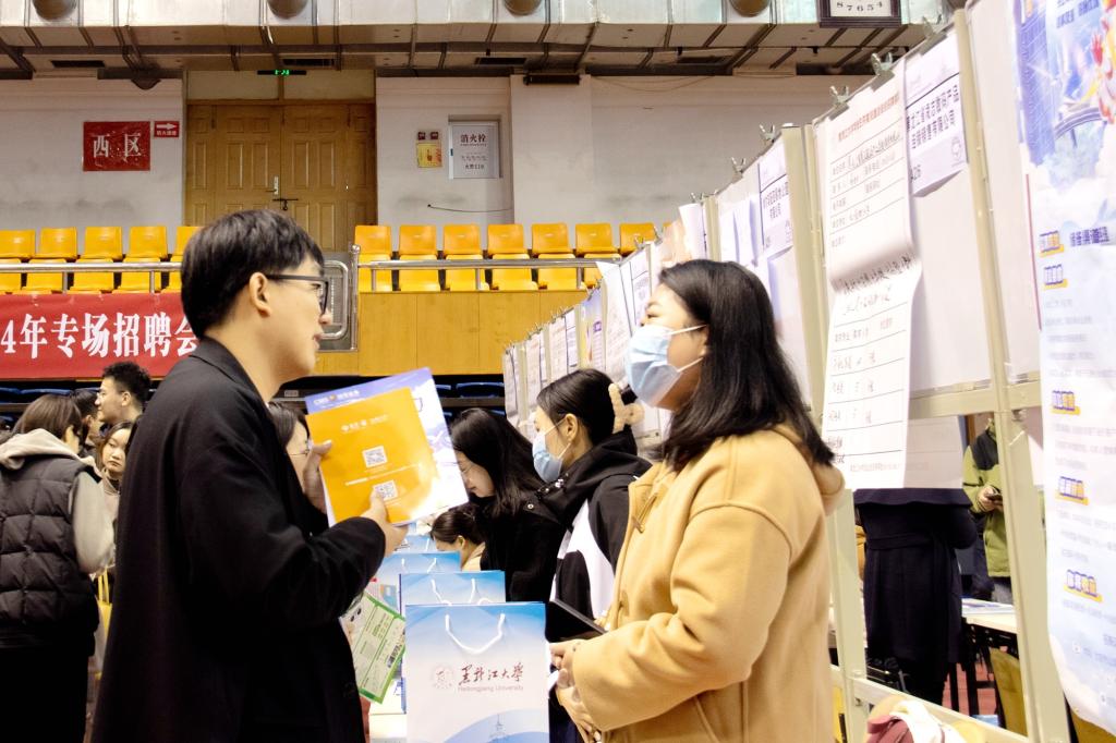 為落實教育部、省教育廳就業攻堅行動的部署,集中提供就業崗位,促進供需對接,我校于3月20日、21日在黑龍江大學體育館舉辦2024屆畢業生春季大型雙選會。本次雙選會參會用人單位共612家,提供就業崗位30256個,現場參會校內外學生1.2萬余人,投遞簡歷16479份,崗位需求涵蓋建筑、“互聯網+”、金融、地產、通信、教育等多個行業。