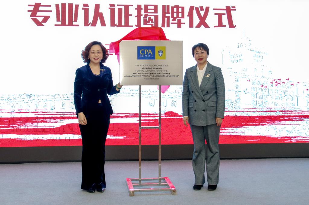 隨后,孟文靜正式宣布黑龍江大學會計學專業通過澳洲會計師公會專業認證,并與王敬波校長共同揭牌。孟文靜總監向教務處處長吳華洋教授頒發專業認證通過證書。