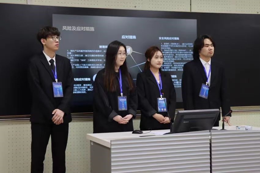 哈爾濱理工大學(xué)經(jīng)濟(jì)與管理學(xué)院楊彩霞副教授代表評(píng)委致辭,黑龍江大學(xué)信息管理學(xué)院電子商務(wù)專業(yè)21級(jí)學(xué)生項(xiàng)方怡團(tuán)隊(duì)帶領(lǐng)參賽選手進(jìn)行宣誓發(fā)言。