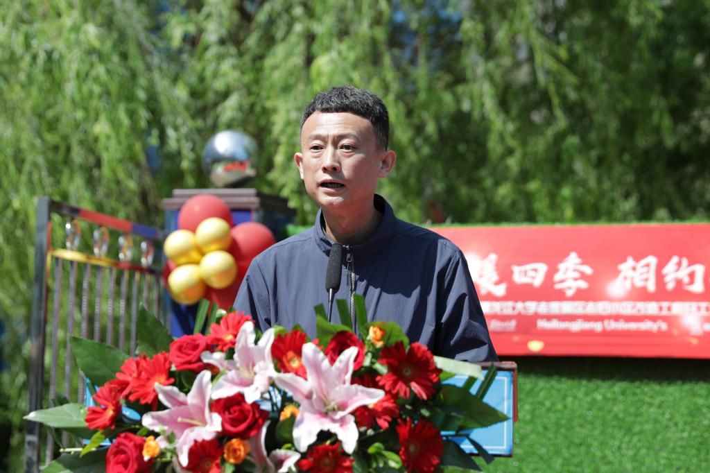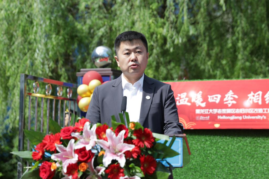 儀式上,與會(huì)領(lǐng)導(dǎo)共同啟動(dòng)“溫暖四季、相約未來”黑龍江大學(xué)老家屬區(qū)老舊小區(qū)改造工程開工儀式。