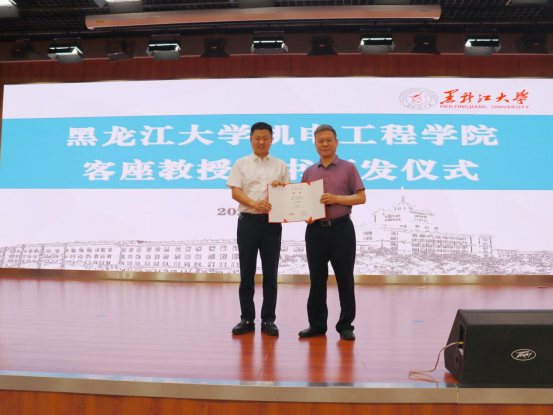 報告會伊始,黑龍江大學黨委常委、副校長李卓為鐘詩勝教授頒發客座教授聘任證書。
