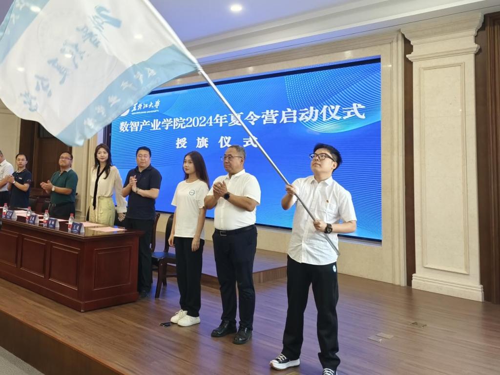 數據科學與技術學院黨總支書記金鵬為本次夏令營團隊授旗。