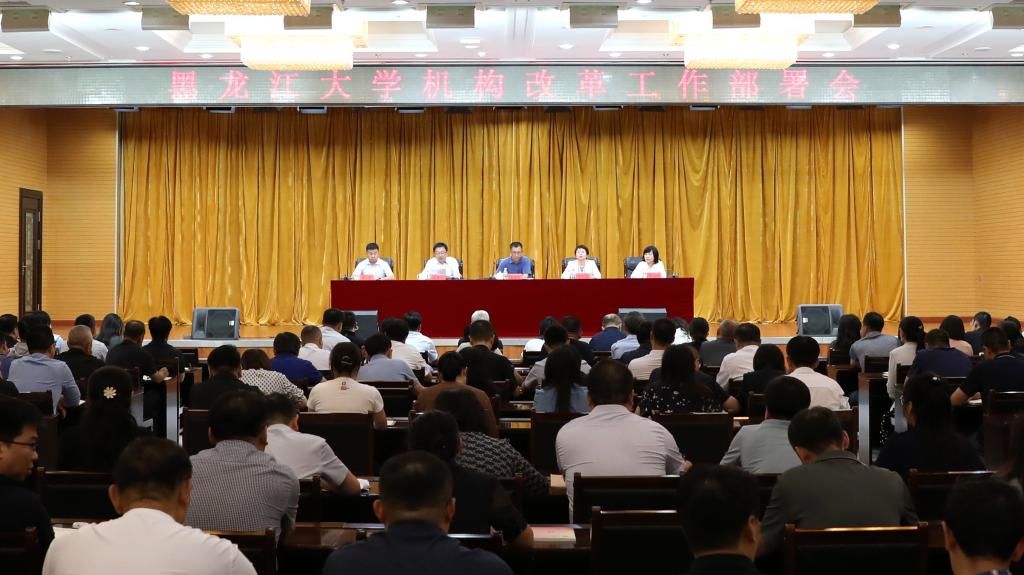 為適應高等教育發展新形勢,進一步優化黑龍江大學學科專業設置,提升資源配置效益,理順工作職能,提升治理能力和水平,8月28日,學校在主樓一樓報告廳召開機構改革工作部署會,全面落實學校黨委工作部署,動員全校各部門各單位進一步統一思想認識,明確目標任務,強化責任擔當,齊心協力、積極穩妥推進學校機構改革各項工作。校黨委書記遲寶旭、校長王敬波,副校長于文秀、李卓,全校中層干部參加會議,校黨委副書記李君明主持會議。