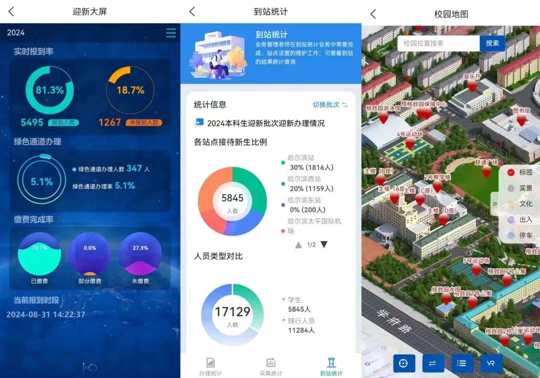 今年,學校升級數字迎新系統,推出智慧迎新平臺。報到前,新生通過迎新系統完成信息采集、到站登記、綠色通道、職業發展測試等所有預報到流程。