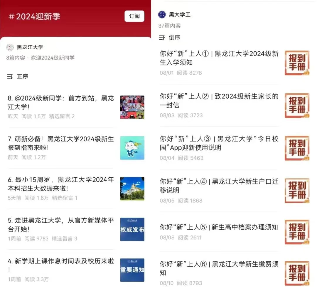 學校通過新媒體平臺發布《2024迎新季》《你好“新”上人》等系列推送,前置發布報到要求和注意事項。
