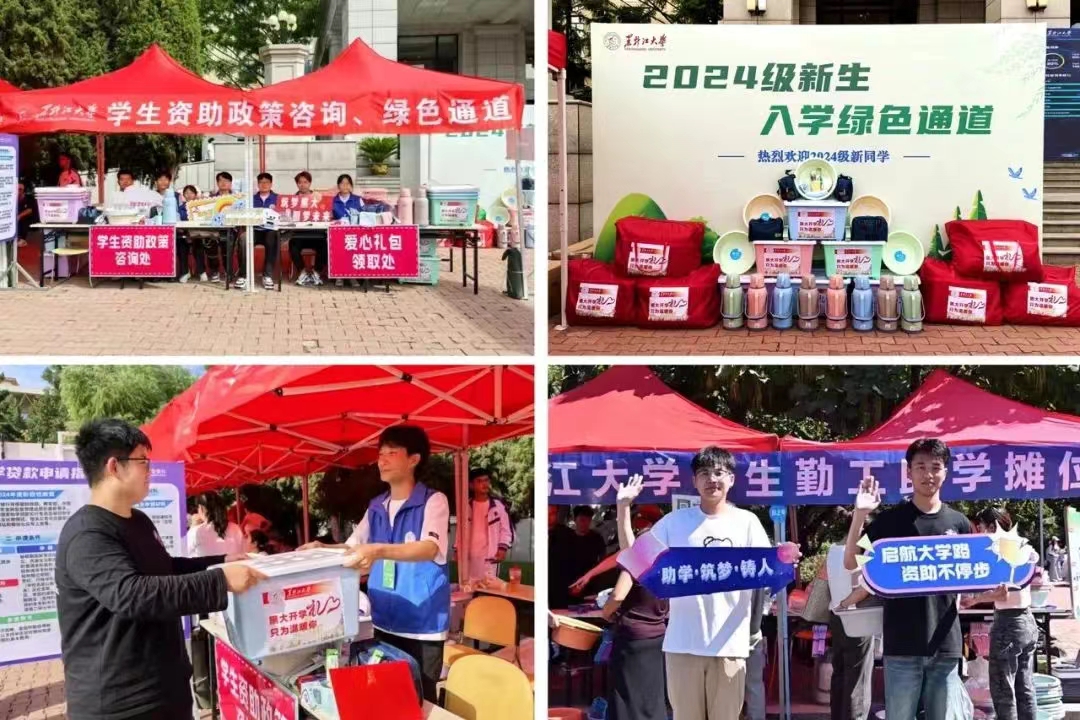 家庭經濟困難學生通過綠色通道安心入學,并領取生活用品愛心禮包。
