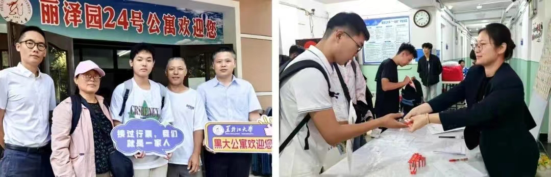 報到當天,學校在哈爾濱站、哈爾濱西站設置了接站點,校內安排中轉車和近千名志愿者,設置黨員先鋒崗,手遞手護送新生到公寓樓。