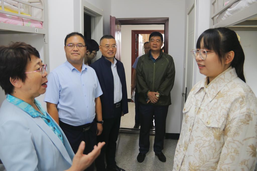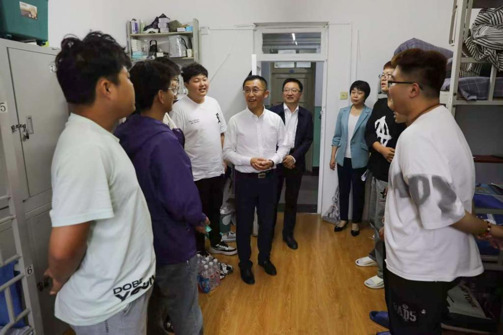 9月1日下午,校黨委書記遲寶旭、校長王敬波、黨委副書記李君明、副校長井立強在學校辦公室、學生工作部、校團委、研究生院等相關職能部門負責同志陪同下走訪2024級新生寢室,實地了解學生的生活情況和住宿環境,向同學們致以親切的關懷與問候。
