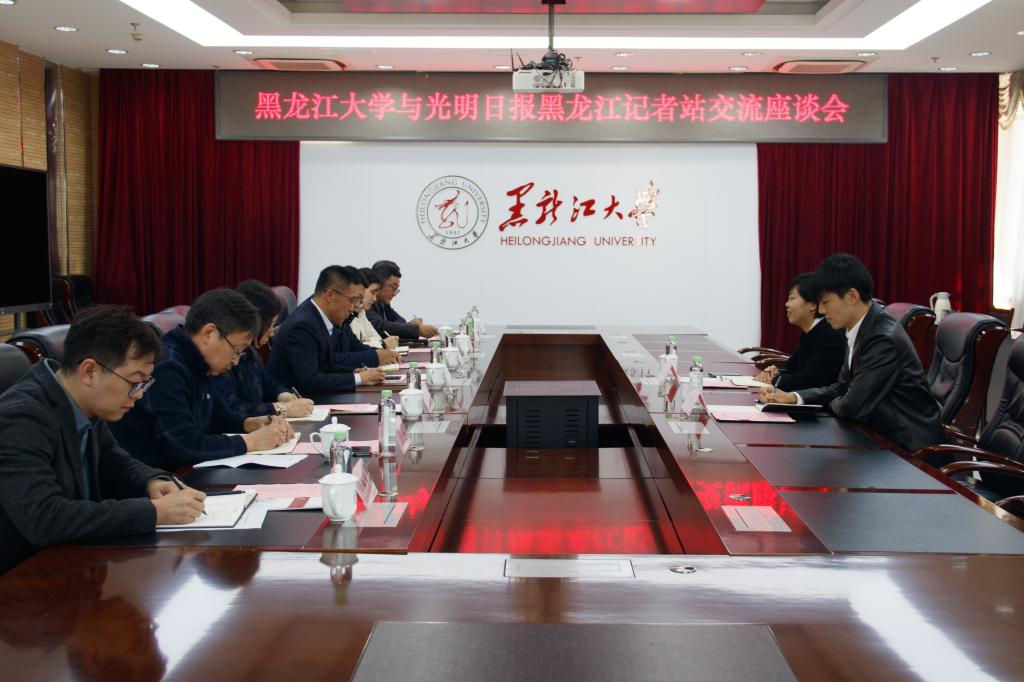 10月24日下午,我校與光明日報黑龍江記者站交流座談會于主樓A802會議室召開。光明日報黑龍江記者站負責人張士英、記者胡沛然,校黨委書記遲寶旭,黨委宣傳部、社會科學處、歷史文化旅游學院、馬克思主義學院、滿語研究院、俄羅斯研究院等單位相關負責同志參加座談會。