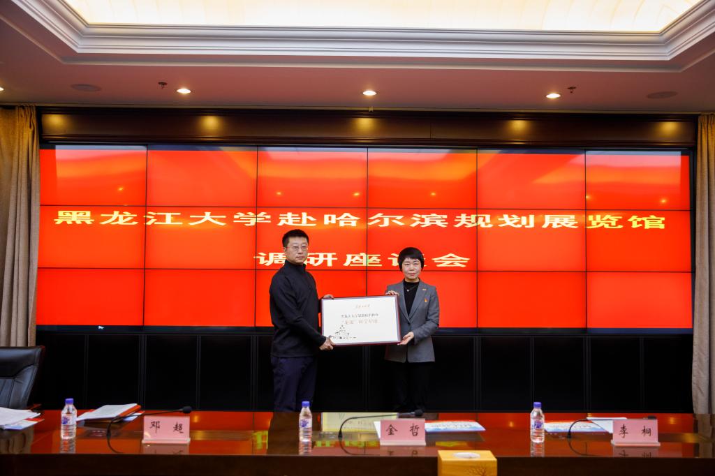 隨后,劉鳳影與金哲進行黑龍江大學思想政治教育“龍課”研學基地授牌儀式。