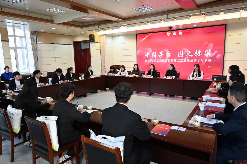 12月13日,“中國茅臺·國之棟梁”2024希望工程圓夢行動黑龍江省捐贈儀式暨茅臺學子分享會在黑龍江大學舉行。共青團黑龍江省委副書記張濤,校黨委副書記劉鳳影,貴州茅臺黑龍江省區經理李維川,貴州茅臺黑龍江經銷商聯誼會會長楊東輝、副會長楊柏松,黑龍江省希望工程捐助中心主任杜晶以及各高校相關負責同志、貴州茅臺黑龍江經銷商聯誼會、茅臺學子代表和新聞媒體參加活動。