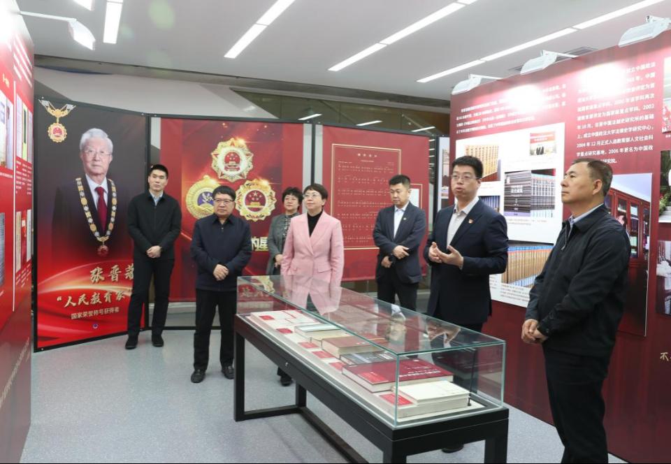 會前,王敬波一行實地參觀了“致敬人民教育家張晉藩教授”主題展覽。(國內合作發展中心供稿)