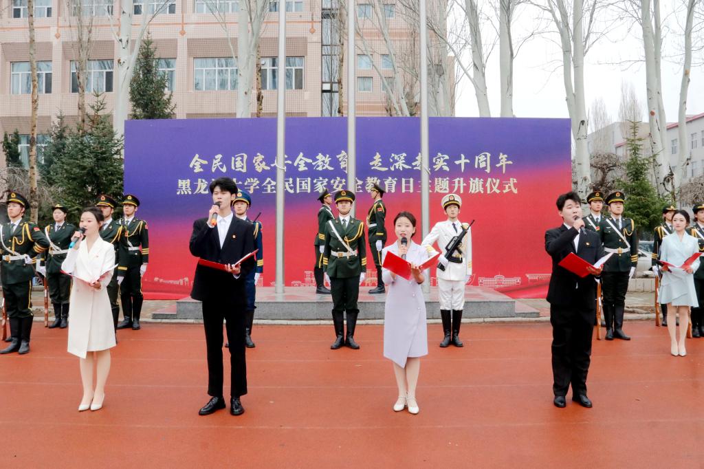 校有線廣播臺帶來國旗下的詩朗誦《山河共守望青春筑長城》。國家安全,是課堂上的思辨,是實驗室的攻堅,是思政“龍課”研學中的熱淚盈眶!他們用青年聲音傳遞出黑大學子濃濃的愛國之心、報國之情、衛國之志。