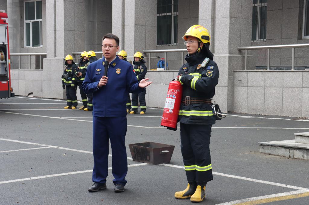 消防逃生疏散演練后,哈西消防中隊的教官向師生詳細介紹滅火器的作用及使用方法,組織師生進行實操訓練,在工作人員的指導下,同學們按照講解要求,完成“提罐、拔銷、壓柄、掃射”標準化操作。