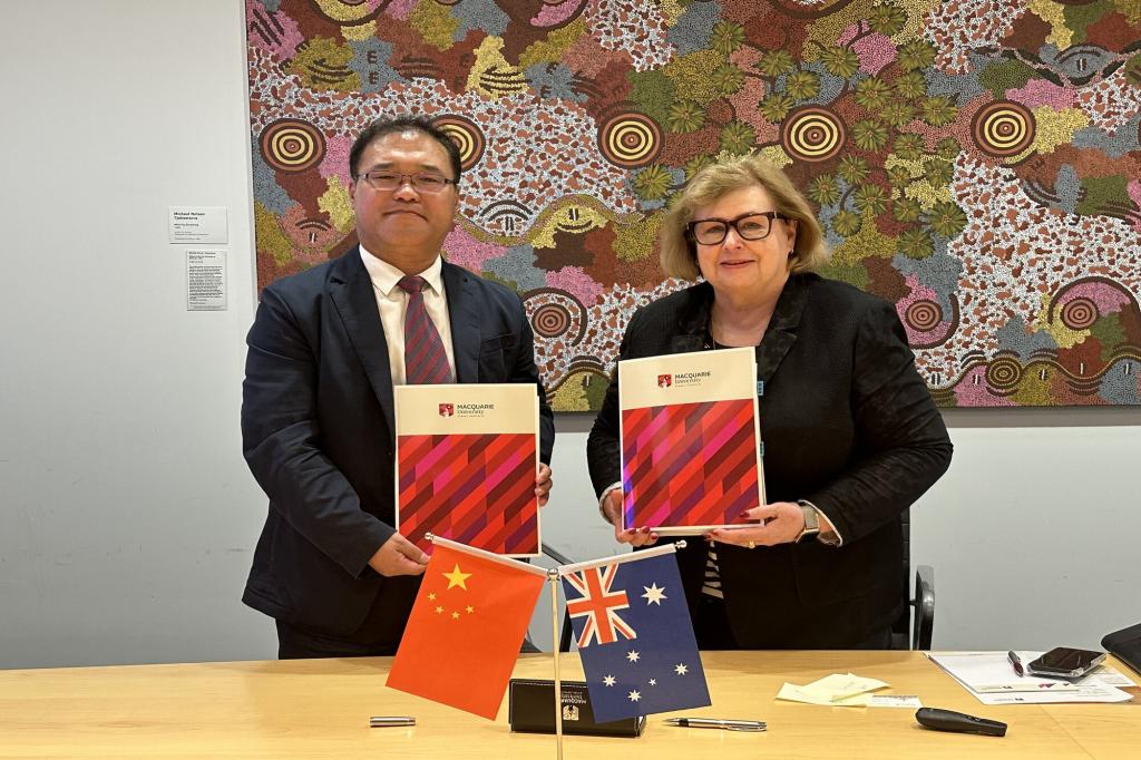 5月8日,代表團訪問麥考瑞大學。未來學生副校長Lee-ann Norris、大中華區(qū)區(qū)域主任Stella Wang等接待代表團,并進行會談。Lee-ann Norris介紹麥考瑞大學整體辦學情況。她表示,麥考瑞大學是一所注重實踐與創(chuàng)新的研究型大學,擁有在商科、法學、教育、語言學等領域優(yōu)勢學科,位于悉尼高科技產(chǎn)業(yè)帶核心區(qū)域,國際合作基礎扎實。井立強介紹黑龍江大學在國際人才培養(yǎng)、創(chuàng)新課程體系建設等方面改革成果,期待與麥考瑞大學在會計、管理、金融等領域推進教師互訪、學生交流及科研合作。隨后,雙方簽署“中高計劃”學分互認協(xié)議。