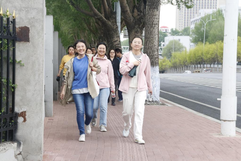 校長王敬波主持此次活動,校黨委書記遲寶旭宣布活動開始。校領導為本次徒步活動鳴笛、檢閱隊伍并帶隊前行,徒步活動正式拉開序幕。教職工們高舉旗幟,神采奕奕,步伐輕快,沿著校園甬路前行,開始了徒步之旅。或談笑風生,悠然漫步,彼此交流著工作經驗和校園趣事,或健步如飛快速前行,享受汗水揮灑的酣暢淋漓。一路上,教職工們感受著和煦的春風,暢快地呼吸著清新的空氣,欣賞著美麗的風景,享受徒步帶來的愜意與輕松。