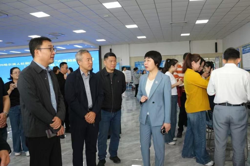 本次丁香人才“六進校園”活動共組織36家涵蓋裝備制造、生物醫藥、教育科研、數字信息等重點領域的單位進行現場招聘,提供了800余個就業崗位,崗位層次豐富、適配廣泛,滿足了不同專業畢業生的就業需求。劉鳳影深入雙選會現場,先后走訪十余家展位,與各部門領導就哈爾濱人才引進、畢業生留哈就業等問題進行深入交流。劉鳳影表示,黑龍江大學始終將“育人為本、服務社會”作為辦學的核心理念,畢業生的就業質量與發展前景,既是學校人才培養成效的直接體現,更是服務區域經濟社會發展的關鍵落點。希望通過此類活動,讓更多優秀畢業生深入了解哈爾濱的發展機遇與引才誠意,在哈找到施展才華的舞臺,實現個人價值與城市發展的同頻共振。