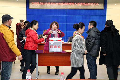 12月26日下午,民盟黑龍江大學委員會換屆選舉暨第八屆委員會成立大會在我校主樓226會議室舉行。民盟省委副主任委員楊永道,民盟省委組織部王巖峰,我校紀委書記榮盤祥,宣傳部、統戰部相關負責人,民革黑大支部、九三黑大支社、民進黑大支部代表,以及來自哈爾濱工程大學、東北林業大學、哈爾濱理工大學、省科學院和省水利廳等在哈兄弟單位民盟支部代表出席會議。