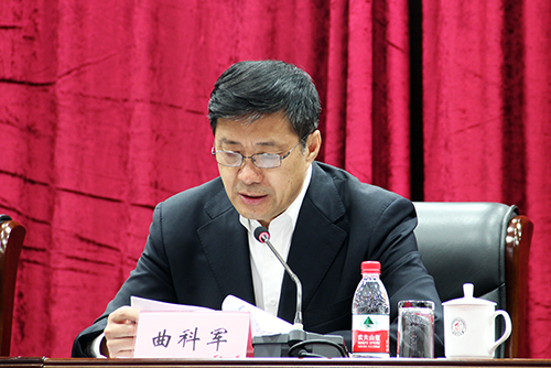 5月16日上午,我校2017年黨風廉政建設工作會議在主樓一樓報告廳召開。學校黨委書記劉德權,黨委副書記曲科軍,副校長丁立群、王司瑜,紀委書記榮盤祥,副校長嚴明,工會主席陳德明以及全體中層干部參加會議。本次會議由黨委副書記曲科軍主持。