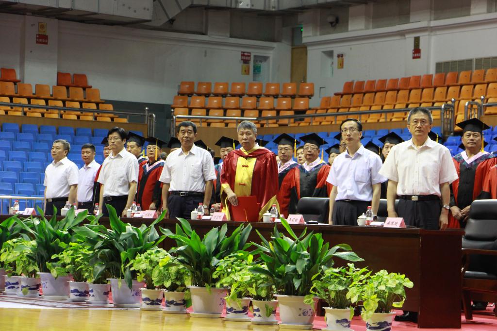 6月22日上午,我校2017屆畢業生畢業典禮在體育館隆重舉行。校黨委書記劉德權,校長付宏剛、副校長丁立群、王司瑜,紀委書記榮盤祥、工會主席陳德明、以及各學院和相關職能部門領導、教師代表、校友代表及2017屆畢業生參加典禮。典禮由副校長丁立群主持。
