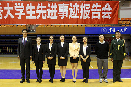 在本次報告會上發言的有:數學科學學院統計學專業的沈云云,國防教育學院朝鮮語專業的孟小暉,教育科學研究院應用心理學專業的趙丹,經濟與工商管理學院會計學專業的姜俊伊,新聞傳播學院廣播電視編導專業的童一,國際文化教育學院數學與應用數學專業的李明星,新聞傳播學院廣播電視編導專業的閆方秋,以及計算機科學技術、軟件學院軟件工程專業的華鯨州。這八名同學分別圍繞專業學習、創新創業、志愿服務等方面講述了自己的大學生活。他們有的奉獻愛心,投身于志愿服務,發揮特長,活躍于校園文化建設;他們有的一身軍綠,毅然戍守國防,勤工儉學,努力回報家人社會;他們有的刻苦鉆研,大膽實踐創新,努力工作,奮力追尋青春夢想。