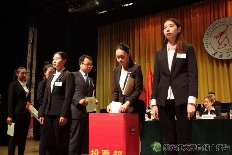 第二十三次學(xué)生代表大會閉幕式上,與會代表審議通過了第二十二屆學(xué)生會委員會《工作報告》,審議通過了《黑龍江大學(xué)學(xué)生會組織改革實(shí)施方案》,審議通過了《黑龍江大學(xué)學(xué)生會章程》,并向全校青年學(xué)生發(fā)出了題為做追夢筑夢、勇于擔(dān)當(dāng)?shù)暮诖笄嗄甑摹冻h書》。