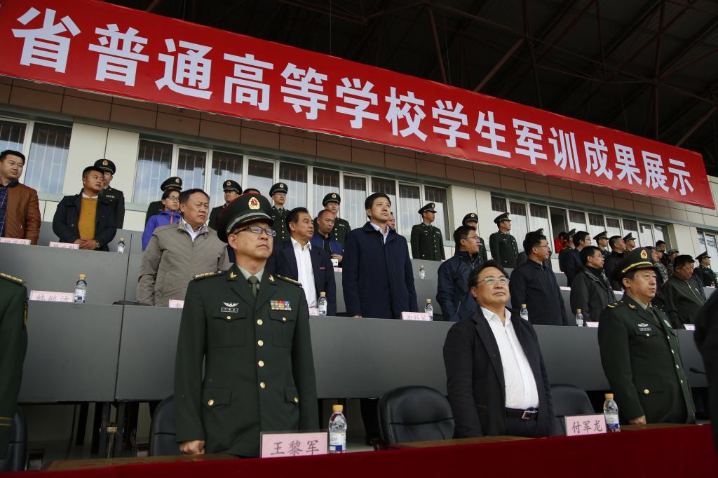 省軍區副司令員邱月潮少將、省政府副秘書長邢愛國、省軍區戰備建設局局長石寶軍大校、省教育廳副廳長姜同河,以及省內各普通高等學校、各市(地)教育行政部門、軍事機關學生軍訓分管領導和武裝部長,以及駐省各部隊學生軍訓分管領導出席活動,我校黨委副書記曲科軍出席了此次活動。來自全省16所院校的2000余名學生參加了閱兵式、分列式和有關軍事科目的匯報表演。