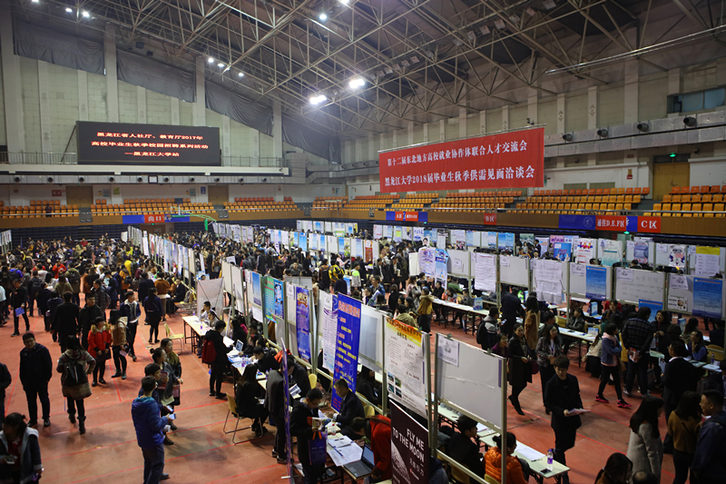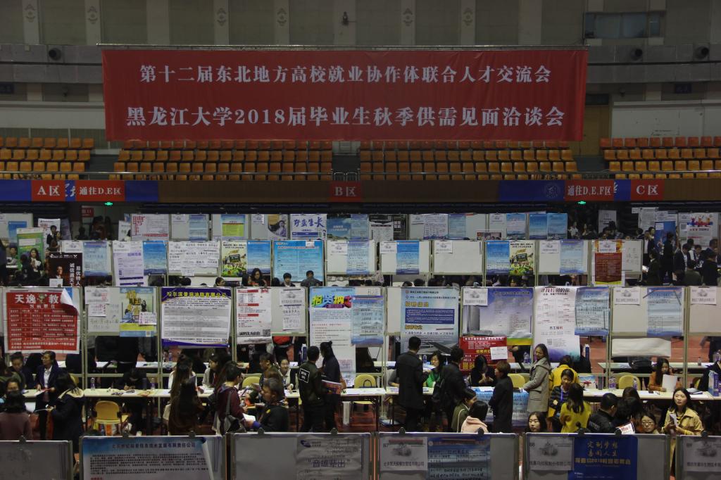 10月27日,第十二屆東北地方高校就業(yè)協(xié)作體聯(lián)合人才交流會(huì)暨黑龍江大學(xué)2018屆畢業(yè)生秋季供需見(jiàn)面洽談會(huì)在我校體育館舉行,來(lái)自黑龍江、吉林、遼寧、天津、北京、上海、廣州等多個(gè)省份的426家用人單位,為我校學(xué)生提供了研發(fā)、技術(shù)、管理、銷(xiāo)售、翻譯、設(shè)計(jì)等就業(yè)崗位。約有1.5萬(wàn)余名學(xué)生到場(chǎng),現(xiàn)場(chǎng)投遞簡(jiǎn)歷4萬(wàn)余份,投遞量以管理、技術(shù)和金融領(lǐng)域居多。