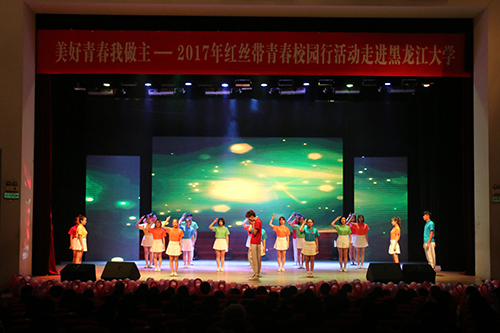 在活動中,我校學生表演了合唱《瞳孔里的太陽》,呼吁大家關注艾滋病,關愛艾滋病兒童;心理情景劇《用愛戰(zhàn)勝愛》講述了一名懷疑自己感染了艾滋病的同學的心理歷程,宣傳了艾滋病的傳播途徑及檢測;《大夢想家》的手語操表演傳遞了溫暖的力量;紅絲帶健康大使沈娜的一曲《我愛你,中國》更是讓大學生們感受到了個人和祖國發(fā)展的密切關系,將現場氣氛推向了高潮。同學們用精彩的文藝演出表達了對艾滋病防控的關注以及對生命的尊重。活動中還舉行了黑龍江省高校“校園防艾宣傳員”的聘任儀式,來自十所高校的10名學生成為了龍江高校群體防控艾滋的新生力量。