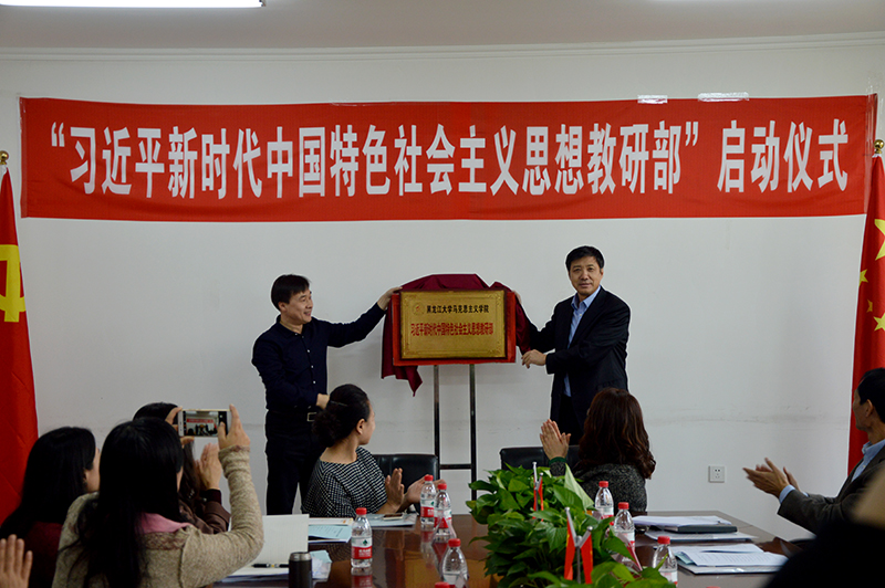 校黨委副書記曲科軍和馬克思主義學院院長劉林共同為“習近平新時代中國特色社會主義思想教研部”揭牌。