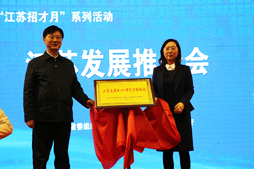 劉德民副廳長和丁宏副書記為“江蘇省黑龍江大學引才聯絡站”揭牌,并分別為泰州、常州、南通、吳江、宿遷頒發“黑龍江大學·江蘇創新創業實踐基地”授牌。