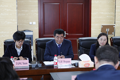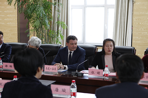活動開始前,劉德權書記與馬克·拉米總領事在主樓八樓會議室進行會談。劉德權書記對馬克·拉米總領事一行的到來表示熱烈歡迎,并對法國駐沈陽總領事館和法國高等教育署對我校工作的關心和支持表示感謝。他簡要介紹了我校與法國高校交流合作的情況,特別是中法學院建立以來與法國高校和學術機構合作取得的成果。他表示,黨的十九大勝利召開標志著中國特色社會主義進入了新時代,希望雙方的合作也進入新時代,并期待馬克·拉米總領事一行的來訪能把我校與法國友好高校的關系向前推進一步,為兩國友好交流做出新貢獻,展現中法交流的新氣象,取得中法交流的新作為。
