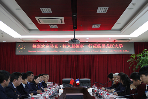 馬克·拉米總領事表示,黑龍江大學作為法國在東北三省最緊密的合作單位,一直被視為中法教育合作交流的典范。他高度評價了學校在教育教學,尤其是與法國合作交流方面取得的巨大成果,并表示會一如既往支持學校與法國高校在各個領域上的合作與交流,一同促進兩國友好合作關系的建設。