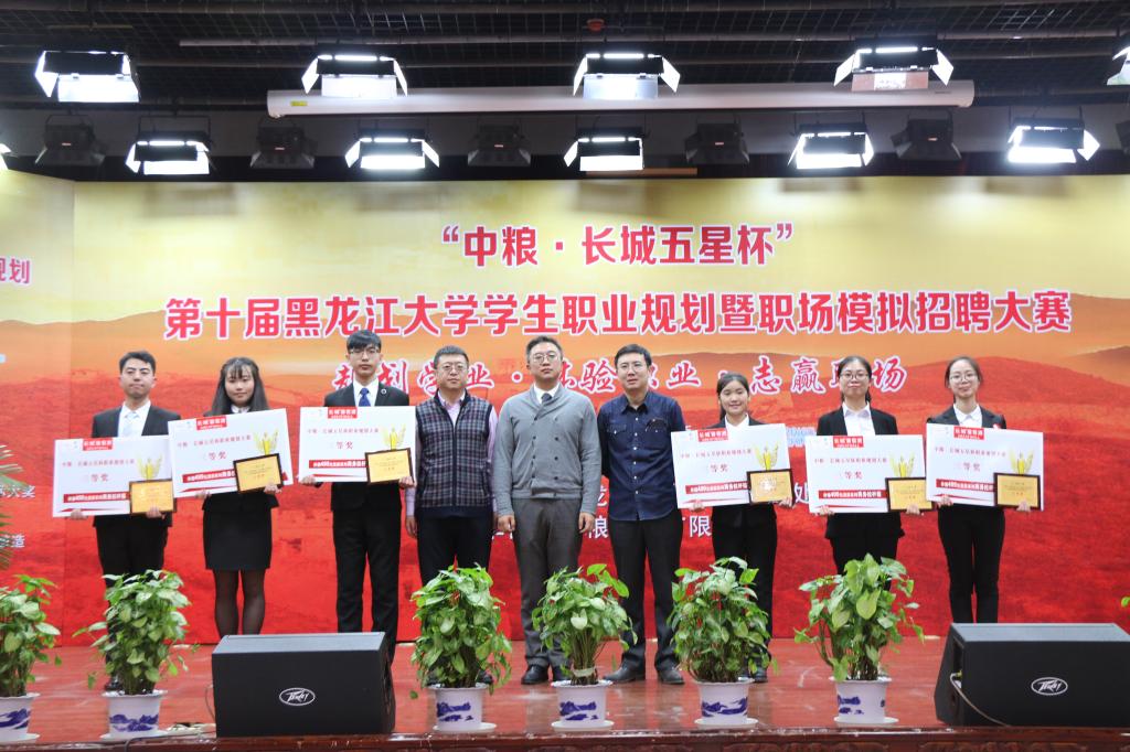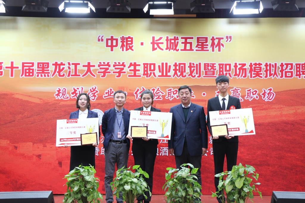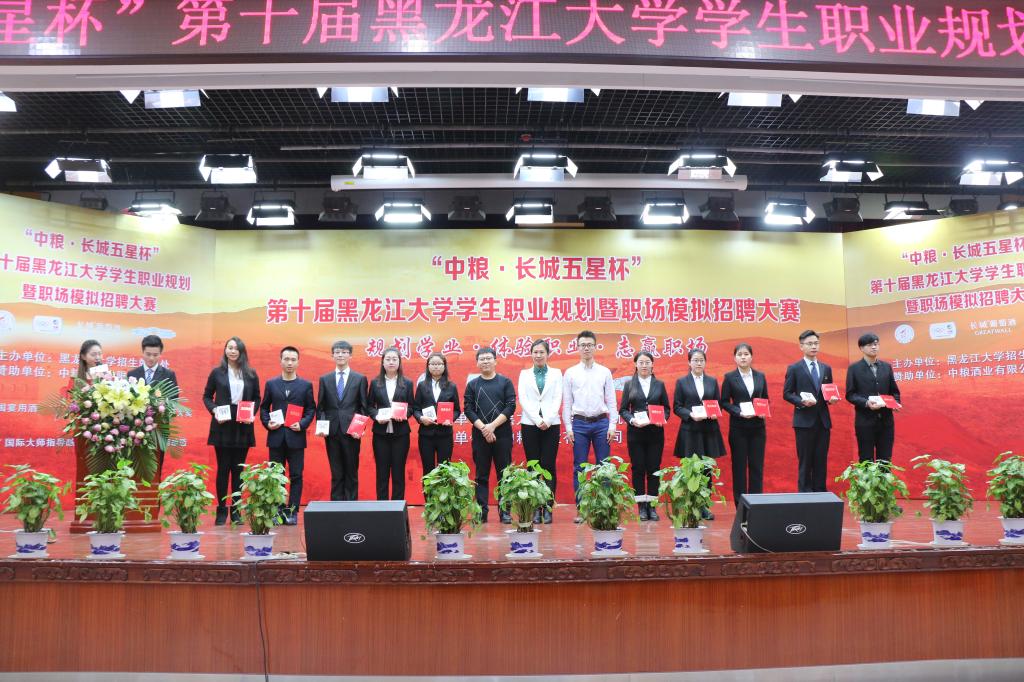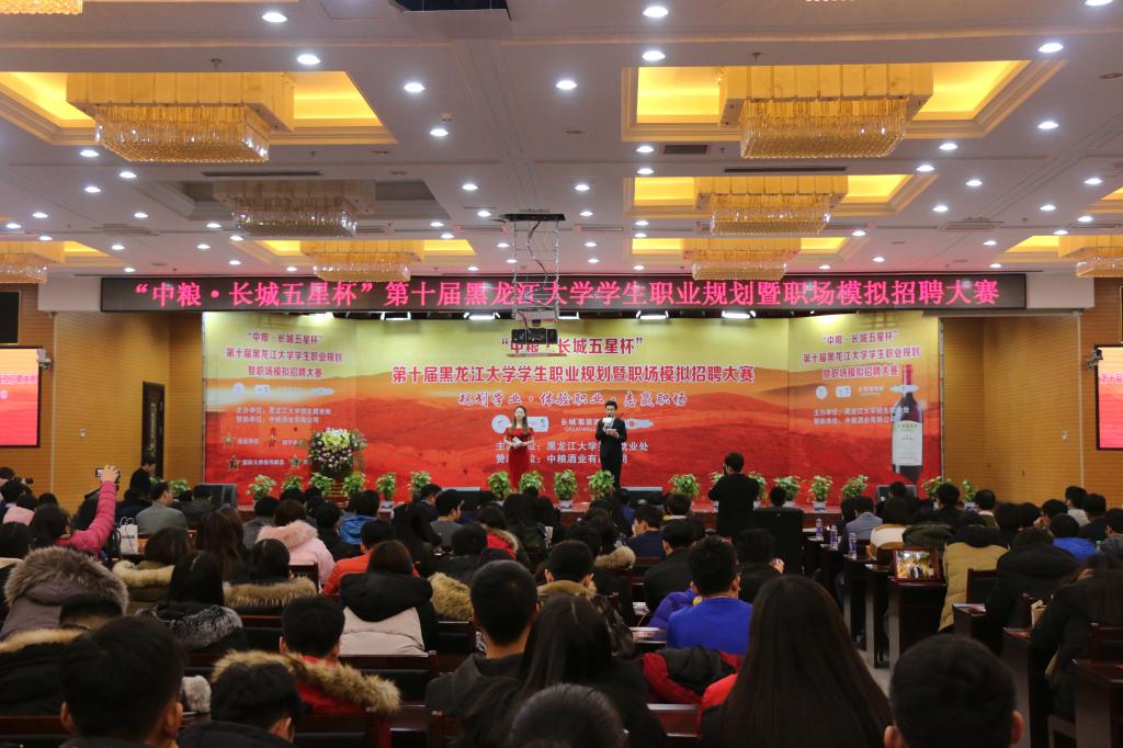 為深入貫徹十九大報告“就業優先戰略”,樹立大學生職業規劃意識,營造高校就業創業氛圍,12月1日我校在主樓C座一樓報告廳成功舉辦了以“規劃學業·體驗職業·志贏職場”為主題的“中糧·長城五星杯"職業規劃暨職場模擬招聘大賽決賽。此次比賽由招生就業處主辦、博天職業發展協會承辦、中糧酒業有限公司冠名贊助。活動特邀中糧酒業有限公司東北分公司人力資源總監丁巖、智聯招聘黑龍江分公司總經理于春洋、黑龍江川海集團人力資源總監田廣、某集團常務副總陳凱、麥肯食品中國高級人力資源經理江志東、美團點評外賣業務黑龍江吉林人力資源負責人張銀龍、今日頭條執行總經理肖丹擔任大賽評委。校黨委副書記丁宏,中糧酒業有限公司東北分公司總經理周立波,招生就業處、宣傳統戰部、學工部學生處、教務處、校團委以及各學院相關負責人和輔導老師出席了本次活動。