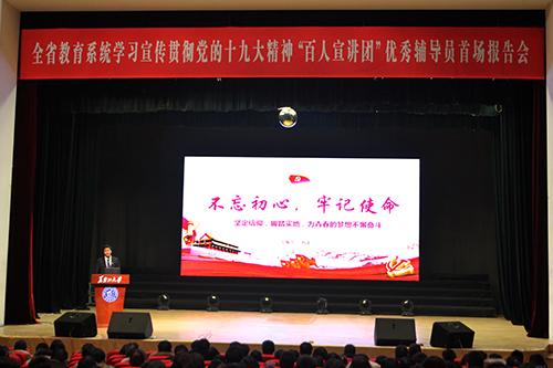 李石處長介紹了我校學習宣傳貫徹黨的十九大精神工作情況。他表示,黨的十九大召開以來,黑龍江大學自編十九大讀本先學一步,開展了主題演講、主題知識競賽、主題黨團活動,先后成立了全省首家習近平新時代中國特色社會主義思想研究院、全省首批習近平新時代中國特色社會主義思想青年學生宣講團,舉措多樣、氛圍濃厚。他相信通過參加此次宣講活動定會把我校學習宣傳貫徹黨的十九大精神進一步引向深入。