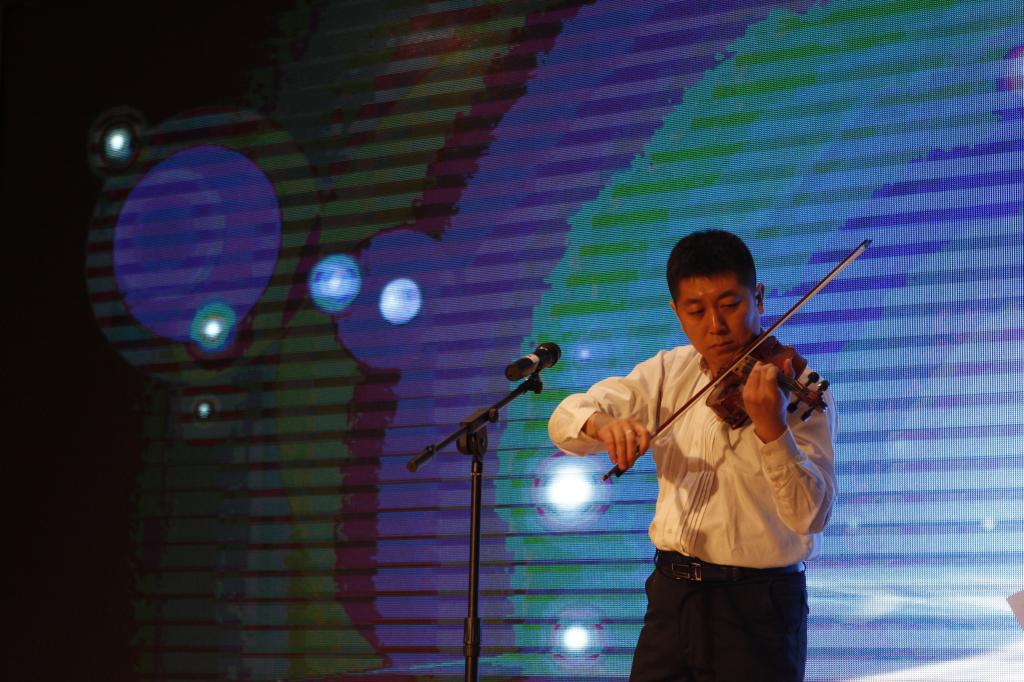 隨后,精彩的文藝表演在小提琴齊奏《海濱音詩》拉開了序幕。集體詩朗誦《我愛你中國》《囑托》鏗鏘有力,朗誦出對祖國,對人民的熱愛;京劇《梨花頌》一腔摯情;歌曲聯(lián)唱《菊花臺》《郵遞馬車》、相聲《新聞晚報》輕松歡快,引得現(xiàn)場觀眾陣陣歡呼;小合唱《我們走在大路上》、女聲獨唱《領航新時代》《絨花》、男聲獨唱《成都》飽含深情,唱出了對祖國的美好未來的希望;小提琴獨奏《查爾達舞曲》琴聲悠揚,悅耳動聽。文藝表演在女聲獨唱《黑大情懷》中圓滿結(jié)束。