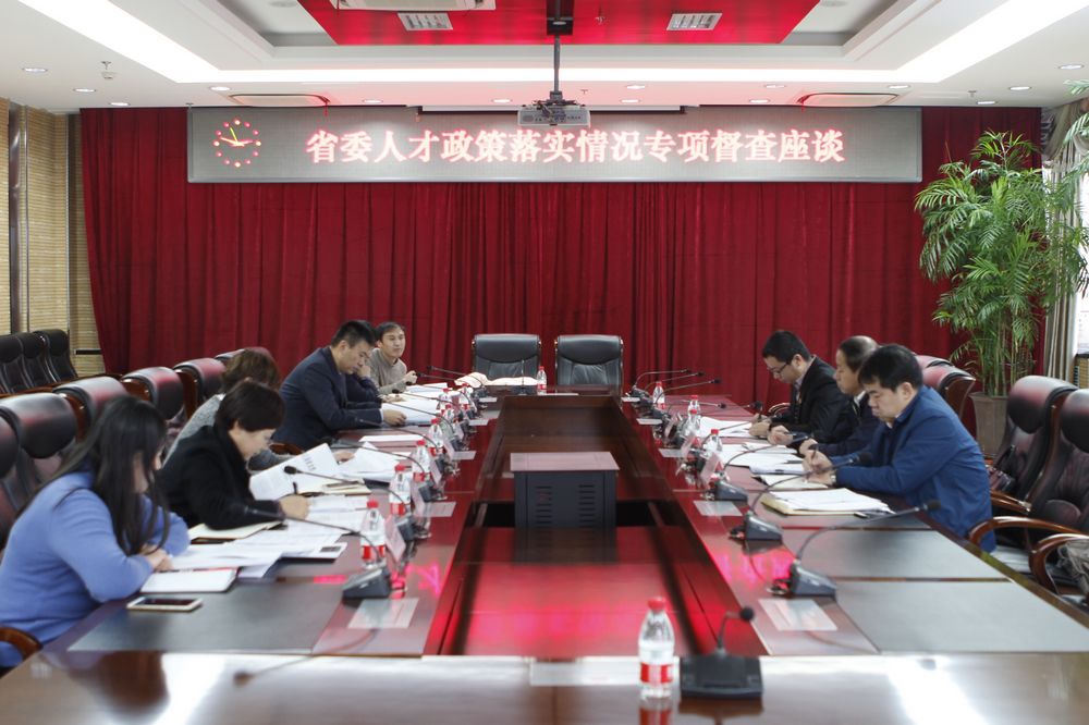 12月28日下午,省委督察組來我校調研人才政策落實情況并在主樓八樓會議室召開省委人才政策落實情況專項督查座談會。省教育廳高校干部處調研員龐勝國、省國資委黨建處副處長陳立新、省委組織部人才工作處工作人員安美忱出席座談,座談會分為兩場進行。