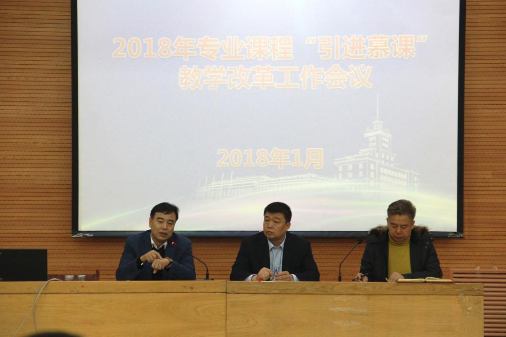 教務部常務副部長吳華洋宣讀并講解了《關于2018年專業課程引進“慕課”開展教學改革立項申報工作的通知》,就申報范圍、限額、條件,具體工作內容,申報程序與提交材料等進行了詳細解讀。