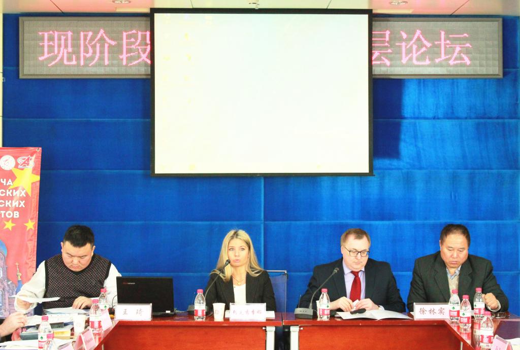 2018年3月5日,由教育部人文社會科學重點研究基地黑龍江大學俄羅斯語言文學與文化研究中心、黑龍江大學俄語學院與亞太地區民間外交學院、俄羅斯戈爾恰科夫公共外交援助基金會共同舉辦的“現階段中俄合作高層論壇”在我校隆重舉行。俄羅斯科學院遠東研究所中俄關系研究與預測中心首席研究員弗拉基米爾?彼得洛夫斯基、圣彼得堡國立大學美國研究教研室副主任雅娜?列克秀金娜教授、俄羅斯高等經濟學院東方學研究所所長阿列克謝?馬斯洛夫、俄羅斯戈爾恰科夫公共外交援助基金會亞洲項目負責人瑪利亞?列姆采娃、俄羅斯國際事務委員會亞太地區及北極地區項目總管柳德米拉?菲利波娃、俄羅斯亞太地區民間外交學院院長謝爾蓋?庫哈連科、俄羅斯布拉戈維申斯克師范大學國際關系系主任奧爾加?扎列茨卡婭教授以及歷史教研室副教授安德烈?德魯吉亞卡、吉林大學劉清才教授、黑龍江省社會科學院東北亞研究所所長笪志剛研究員和俄羅斯研究所所長馬友君研究員、長春師范大學外語學院盧春月教授和哈爾濱新區的專家學者和對俄工作者以及我校副校長嚴明,俄羅斯語言文學與文化研究中心、俄語學院專家學者以及其他院所的師生,共計50多人與會。開幕式由俄語學院院長孫超教授主持。