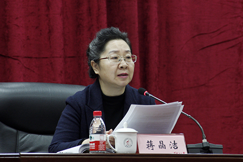 蔣晶潔副書記宣讀了省委高校工委《關于開展高校處級干部學習貫徹黨的十九大精神集中輪訓工作的通知》,安排布置了我校輪訓工作,提出了輪訓工作要求。她從培訓主題、培訓對象、培訓內容、培訓方式四個方面詳細解讀了本次輪訓方案,并要求大家做好學習準備,嚴格遵守紀律要求,按照班次參加培訓學習。