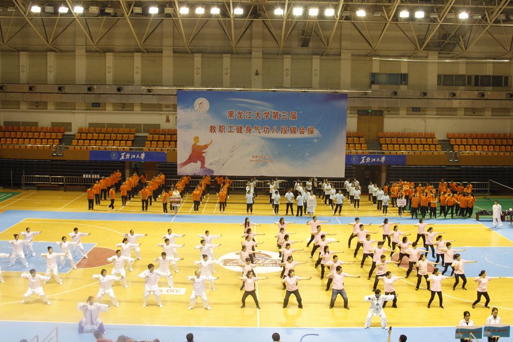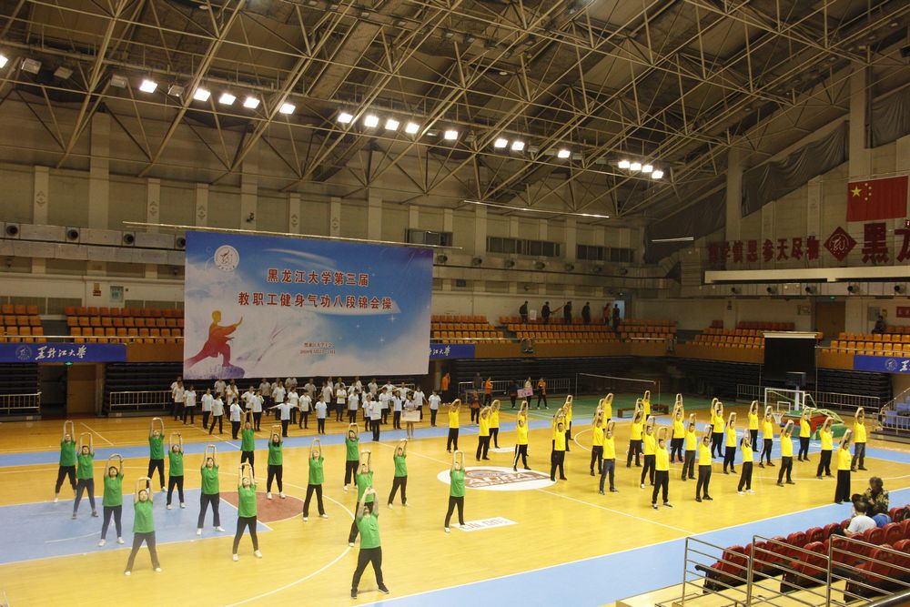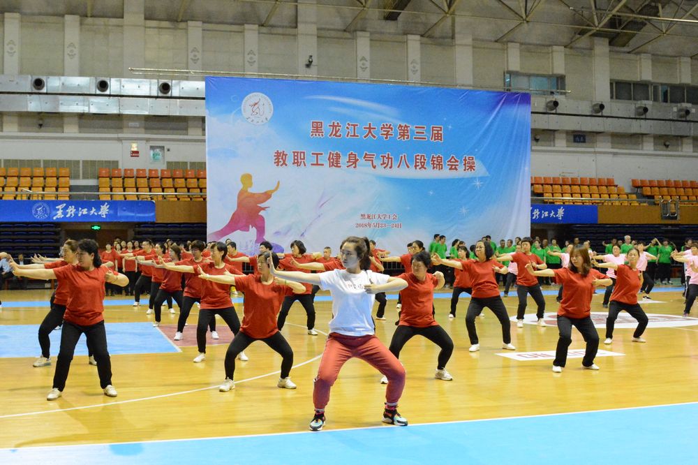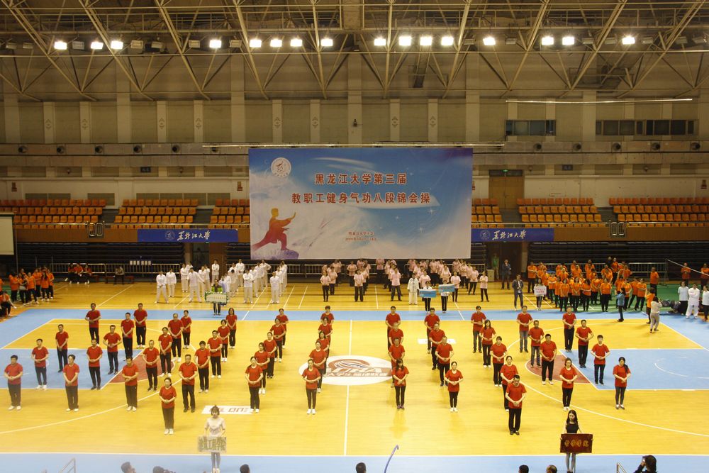 陳德明主席發表講話。他指出,從2013年至今,在黨政的大力支持下,在校工會和部門工會的不斷努力普及推廣下,在教職工的積極廣泛參與下,健身操八段錦運動有了廣泛的群眾基礎,得到了蓬勃的發展。健身操八段錦這項運動,已經成為健康黑大行動的一項重要工作內容。他希望通過這次活動,積極引導各單位和廣大教職工更加自覺地進行健身鍛煉,加入到全民健身的行列當中來,為身體素質的提高和全民健身事業的發展不懈努力,為學校深入實施“三大辦學戰略”,扎實做好“三篇大文章”作出新的更大貢獻。