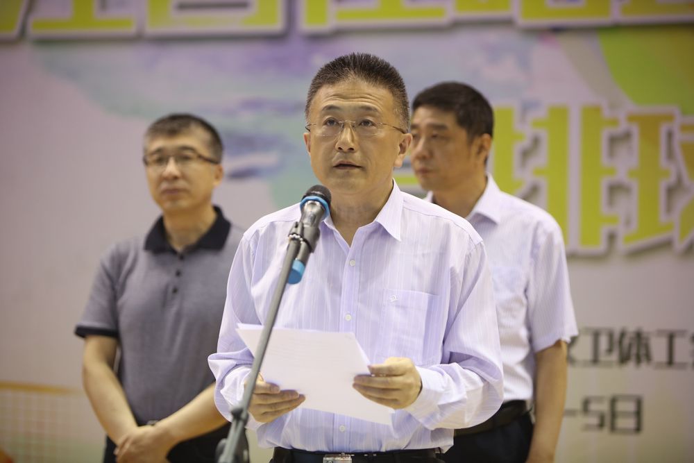 陳德明主席在開幕式上致歡迎詞。他向在本次比賽如期舉辦致以熱烈祝賀,向參加本次比賽的各位來賓、兄弟高校表示熱烈歡迎,并向為大賽提供悉心指導的省教科文衛體工會表示衷心的感謝。陳德明主席表示,本次比賽必將推動我省高校職工文體活動深入開展,必將推動全民健身運動蓬勃發展,把高水平的體育競技和豐富多彩的校園文化融為一體。必將進一步增進兄弟院校之間的友誼,為學校改革發展增添新的活力。他衷心祝愿各代表隊通過比賽,互相學習、互相交流、共同提高,并衷心祝愿全體裁判員、教練員、運動員在黑龍江大學比賽期間,身體健康,生活愉快,比賽順利。