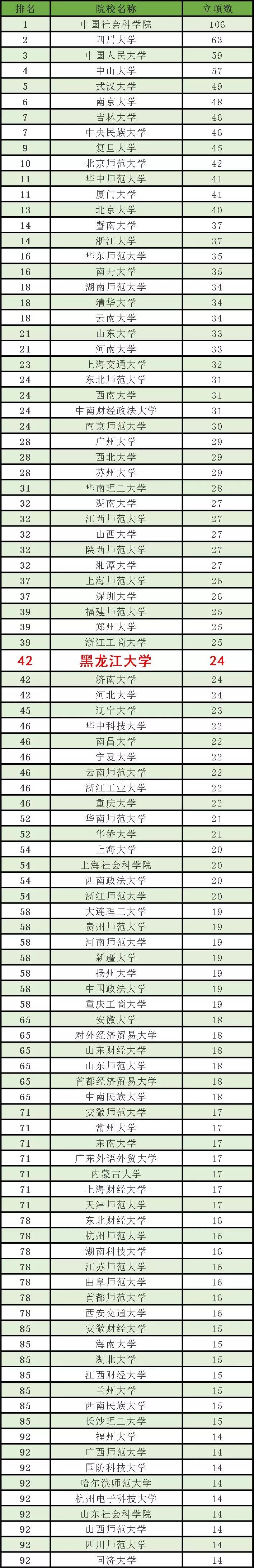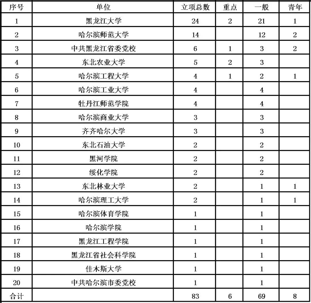 2011年以來,我校國家社科基金項目立項總數在全國排名均并列前30名,在全省遙遙領先。希望相關科研領域研究人員能夠振奮精神,凝心聚力,加快推進我校從教學研究型大學向研究教學型大學的戰略轉型,繼續繁榮發展黑龍江大學哲學社會科學研究。(社會科學處供稿)
